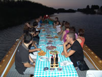 Si además de un relajante paseo desea celebrar un aniversario, una comida de empresa informal, o simplemente degustar la tradicional gastronomía de la zona, le ofrecemos toda una degustación a bordo de paella Valenciana así como de los ricos aperitivos y viandas de la tierra elaborados por uno de los mejores restaurantes de El Palmar. El tamaño de la mayor de nuestras embarcaciones hace posible una relajada y placentera comida mientras nos dejamos mecer por el suave vaiven de las aguas de la Albufera. ¿Se imagina sorprender a su pareja con una invitación a comer en una mesa privada flotante con las vistas más bonitas de toda Valencia? Un lujo que no puede dejar pasar.